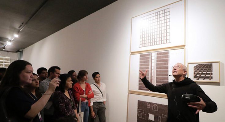 Durante su recorrido por la exposición, Valerio Olgiati explicó a los asistentes cada una de las piezas que se exhiben, maquetas y planos principalmente, y más tarde dictó la conferencia en la que se refirió a su trabajo arquitectónico.