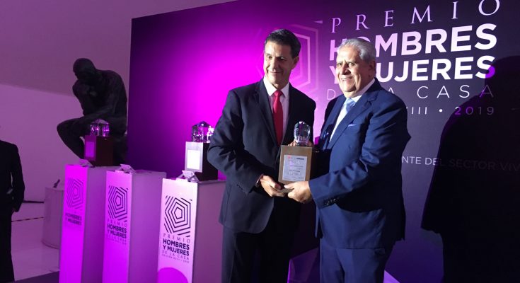 Javier Olvera Iglesias, fundador y presidente de la desarrolladora Vivo Grupo Inmobiliario, recibió de manos de José Manuel Agudo el Premio Hombres y Mujeres de la Casa 2019, en la categoría «Cimientos», por su entrega y legado al sector inmobiliario y la vivienda, principalmente en el sureste del país.