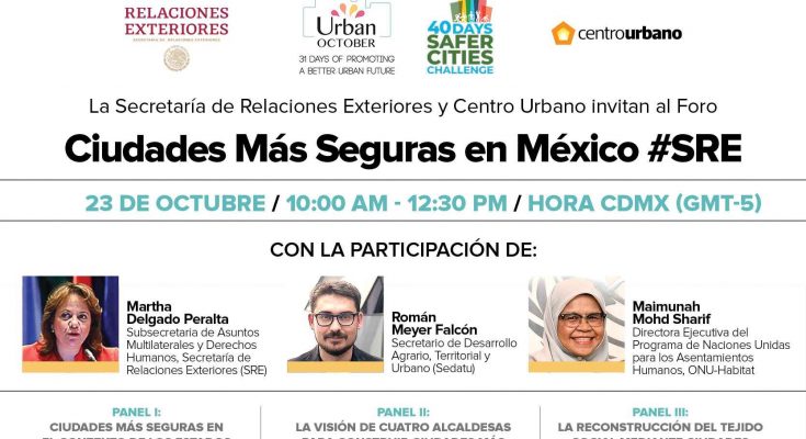 La Secretaría de Relaciones Exteriores y Centro Urbano invitan al Foro “Ciudades Más Seguras en México #SRE«.