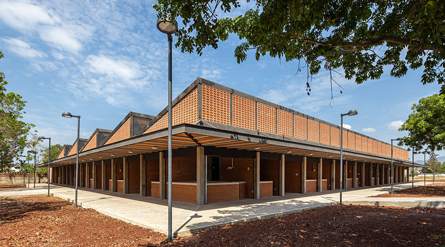 Un espacio de comercio público donde el ladrillo viste fachadas y zonas de acceso. La elección del ladrillo responde a criterios de durabilidad frente a la exposición al ambiente costero así como de bajo mantenimiento. Además, la textura del material le da carácter al espacio comercial, permitiendo que los usuarios identifiquen visualmente el mercado como un punto de encuentro urbano.