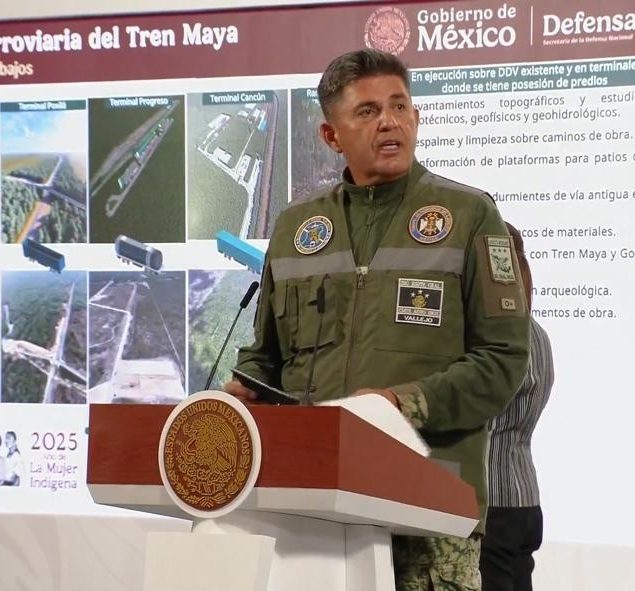 Durante la conferencia matutina de este miércoles, Gustavo Ricardo Vallejo Suárez, comandante del Agrupamiento de Ingenieros ‘Felipe Ángeles’ de la Secretaría de la Defensa Nacional (Sedena), presentó los avances en las obras de las nuevas rutas de trenes de pasajeros, así como la vía de carga del Tren Maya.