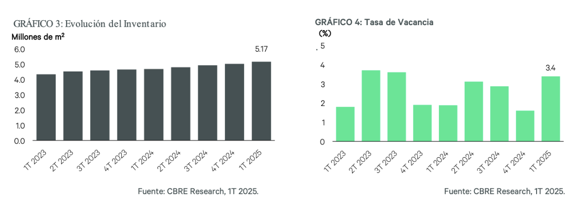 En tanto, la absorción neta alcanzó más de 50,700 m² en el 1T2025, lo cual fue superior a los 38,500 m² que se registraron en el mismo periodo del año anterior.