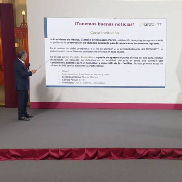 Romero puso como ejemplo el caso de Tamaulipas, donde se construirán 362 viviendas que comenzarán a entregarse a partir de agosto. El Infonavit enviará 2,000 invitaciones: 1,000 para mujeres derechohabientes y 1,000 para hombres.