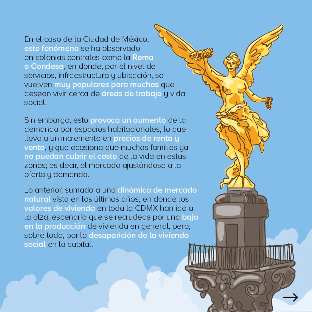 En el caso de la Ciudad de México, este fenómeno se ha observado en colonias centrales como la Roma o Condesa, en donde, por el nivel de servicios, infraestructura y ubicación, se vuelven muy populares para muchos que desean vivir cerca de áreas de trabajo y vida social.